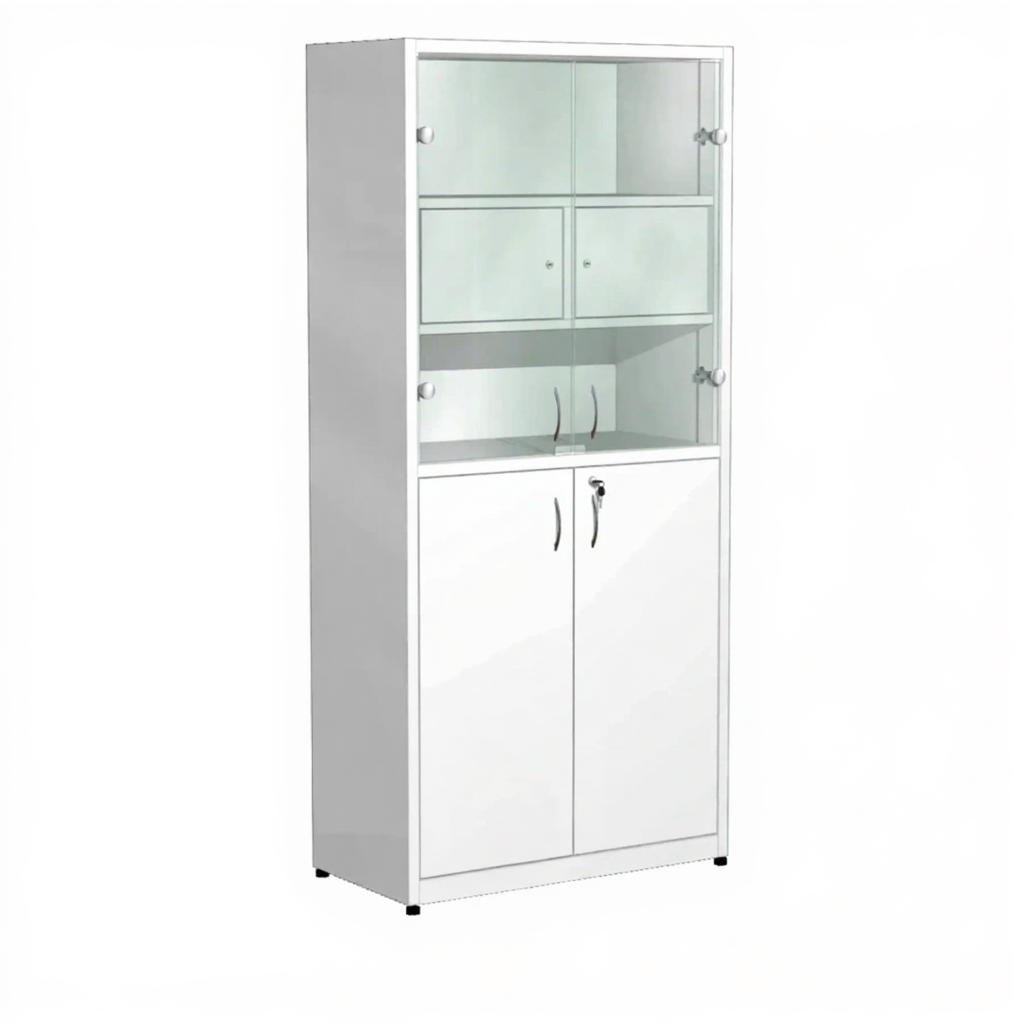 Шкаф металлический для медикаментов с сейфом (стекло) ШдМ-5.1 (белый) активно используются в больницах, лабораториях, аптеках, где необходимо хранение медикаментов, медицинского инвентаря, одежды работников, приборов, больничной документации.