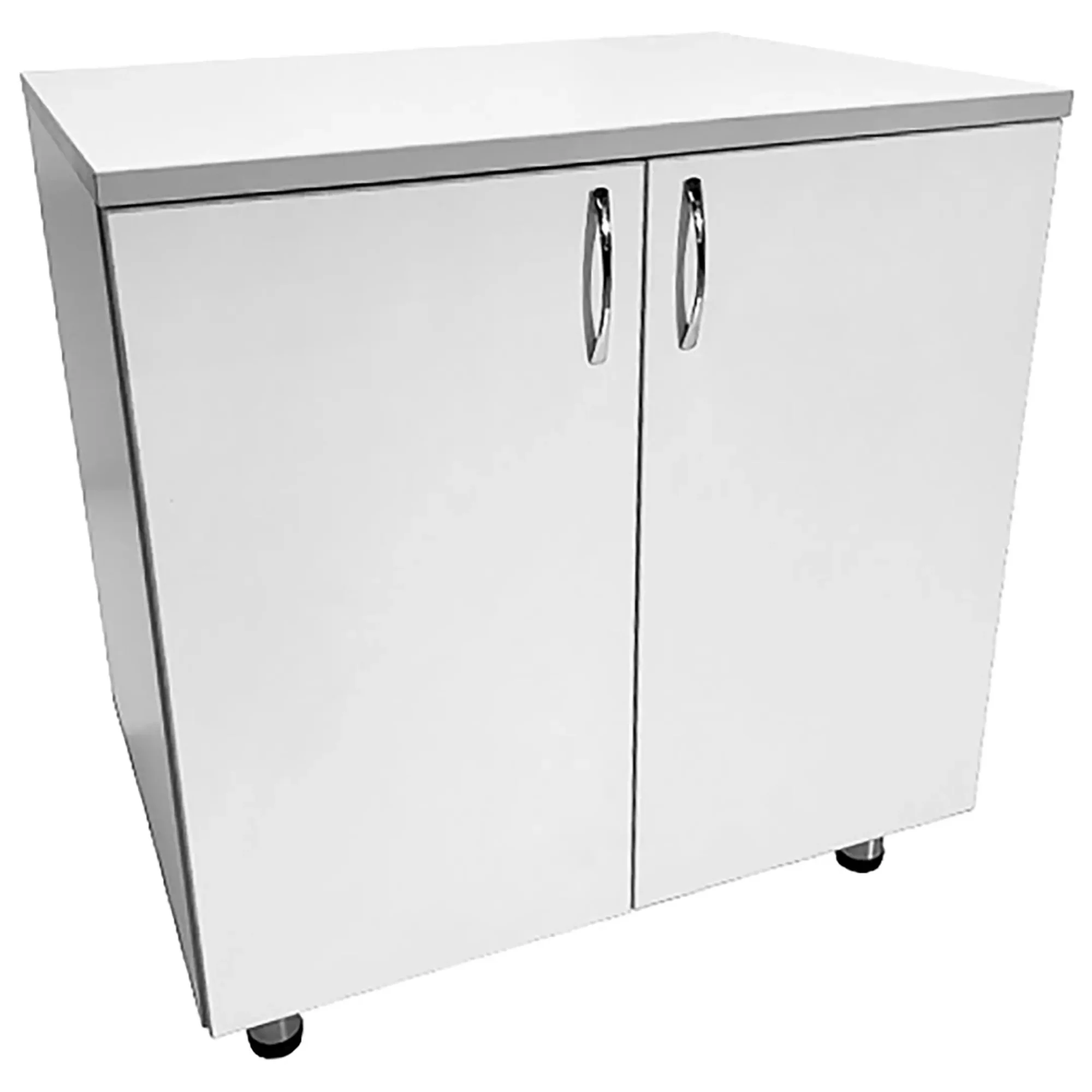 Оптимальная высота и регулировка: Расстояние от пола до верхней кромки рабочей плоскости составляет 800 мм, что является удобным для работы. Тумба установлена на четыре регулируемые по высоте опоры высотой 100 мм, что позволяет идеально подстроить её под любые условия эксплуатации.