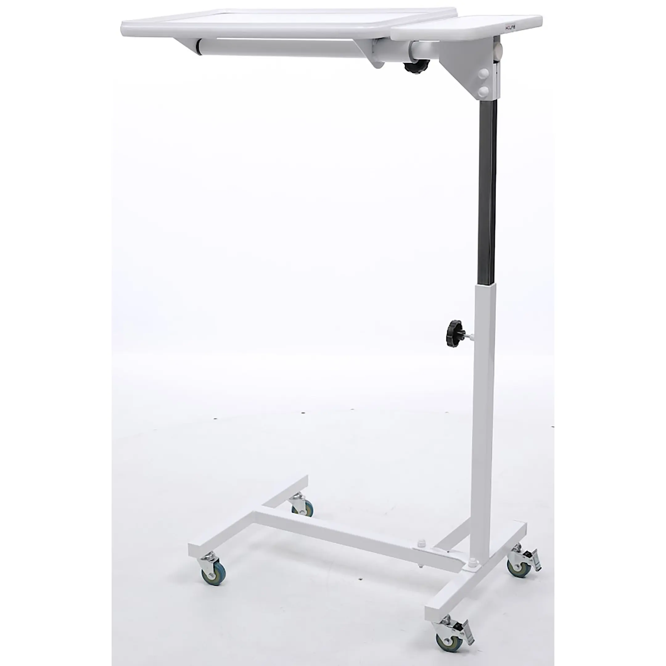 • Столик установлен на 4 самоориентирующиеся колеса из немаркой серой резины, диаметром 50 мм, 2 колеса со стопором;