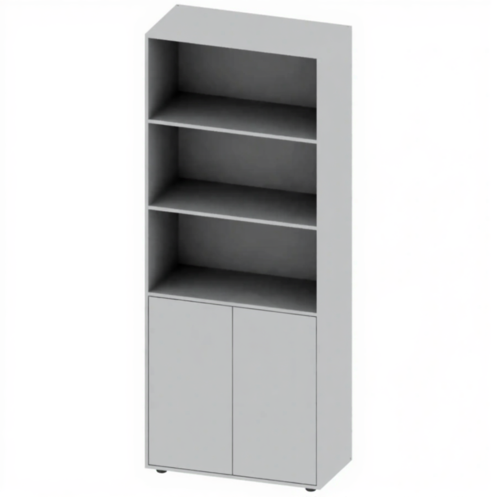 - Практичность и организация — идеально подходит для розничной торговли, где на открытых полках выставляется основной товар, а в закрытых секциях хранится запас или упаковка. В офисных условиях позволяет разделить публичные и внутренние материалы.
