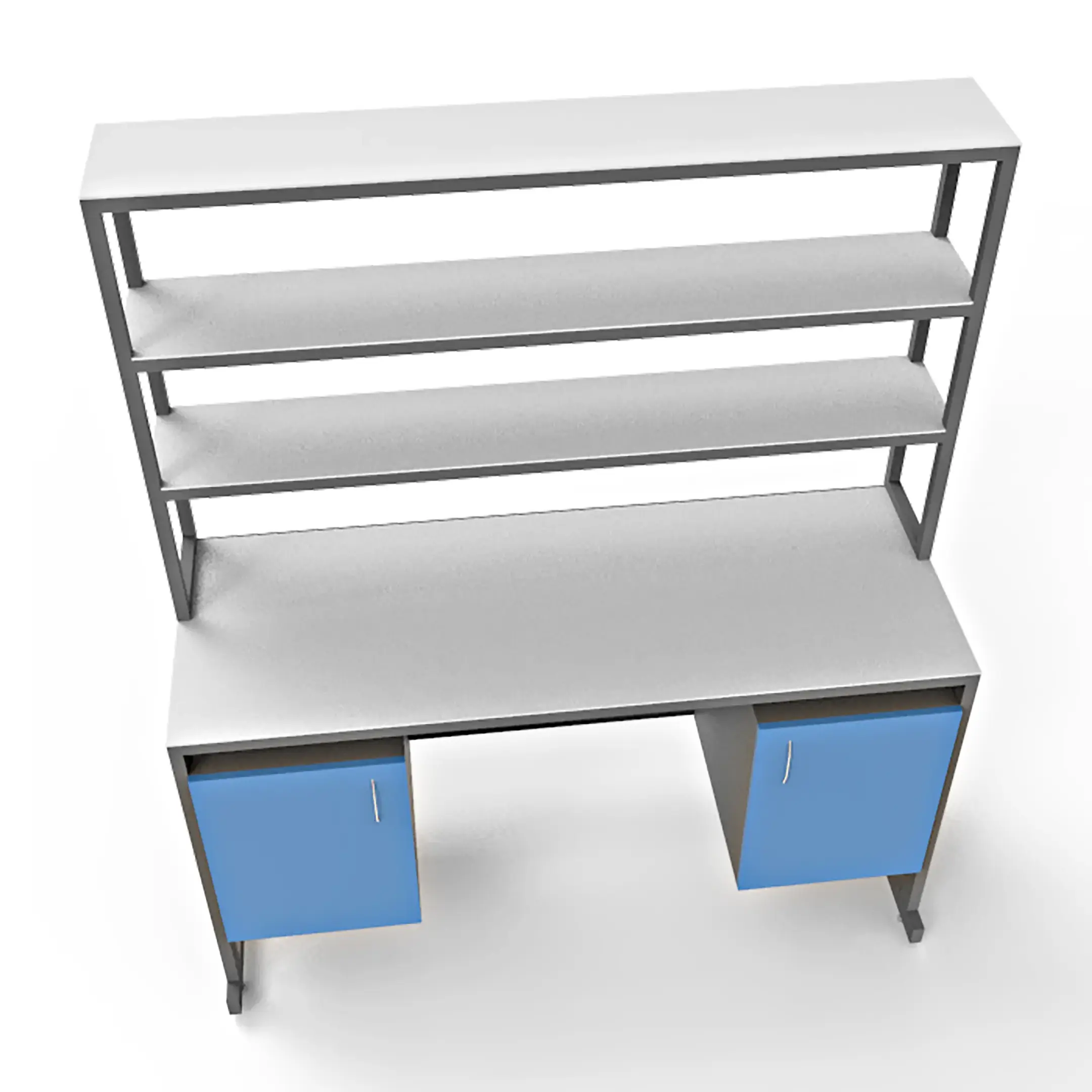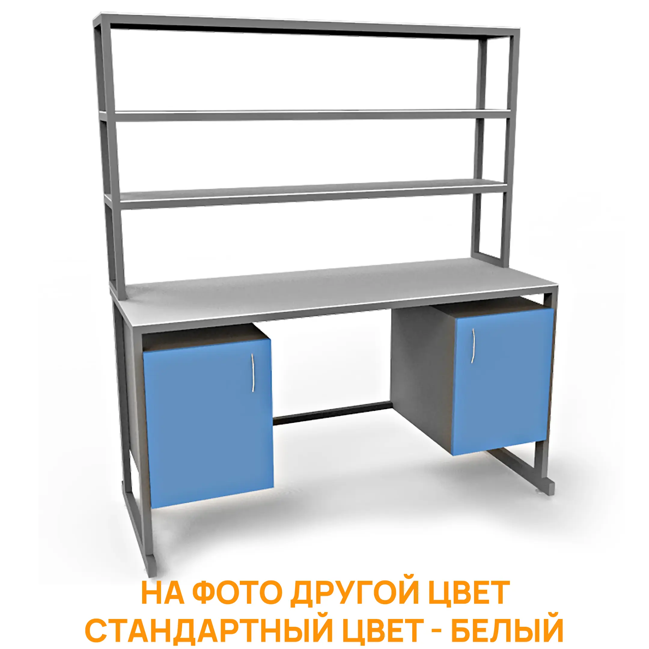 - Функциональная надстройка — три полки для дополнительного размещения оборудования, общая высота стола с надстройкой 1850 мм.