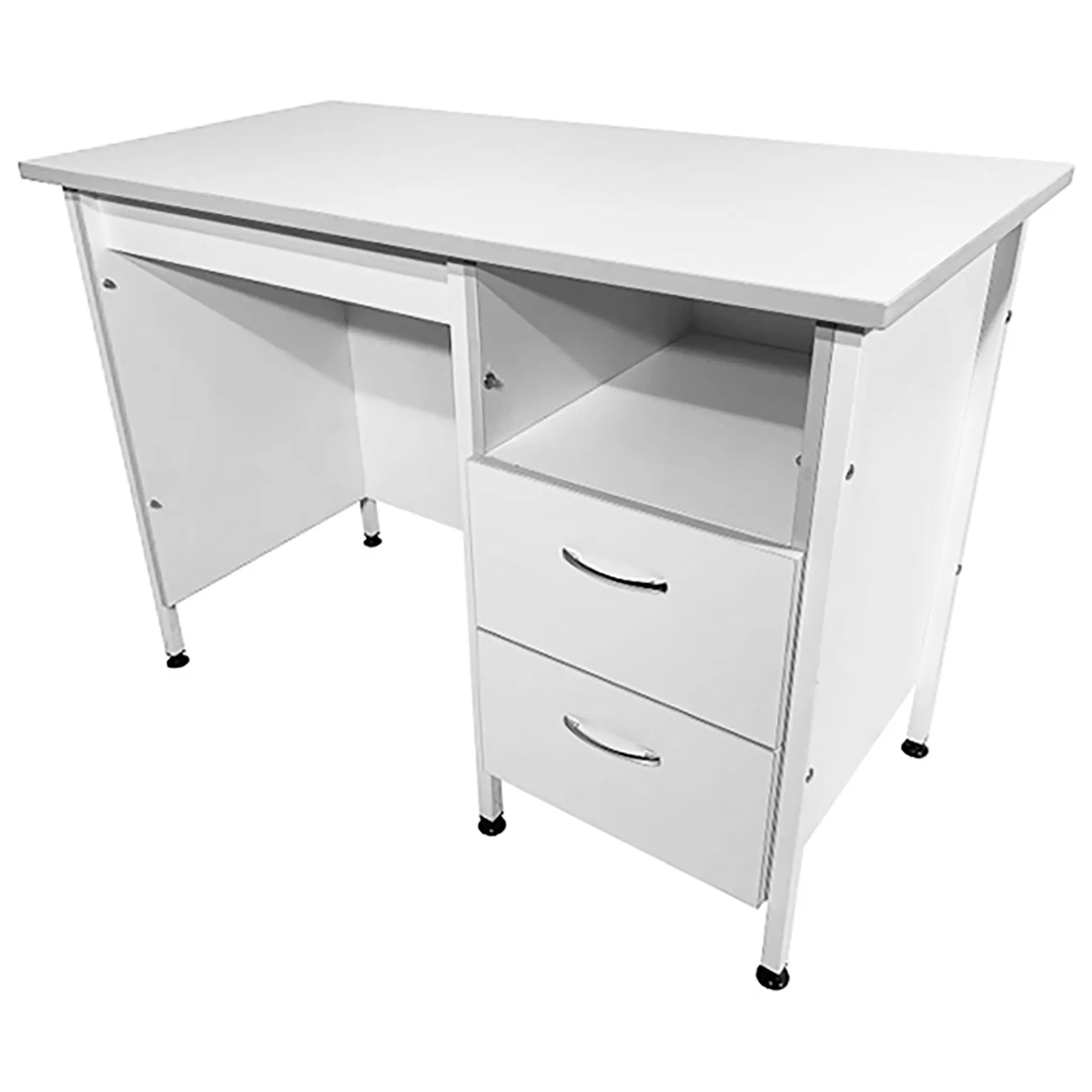 Стол лабораторный СЛ 12.012 (белый) — это идеальное решение для создания эффективного рабочего пространства сотрудников в лабораториях и медицинских учреждениях. Модель оснащена тумбой с вместительной верхней нишей и двумя выдвижными ящиками. Каркас выполнен из стального профиля, столешница из ЛДСП толщиной 22 мм.