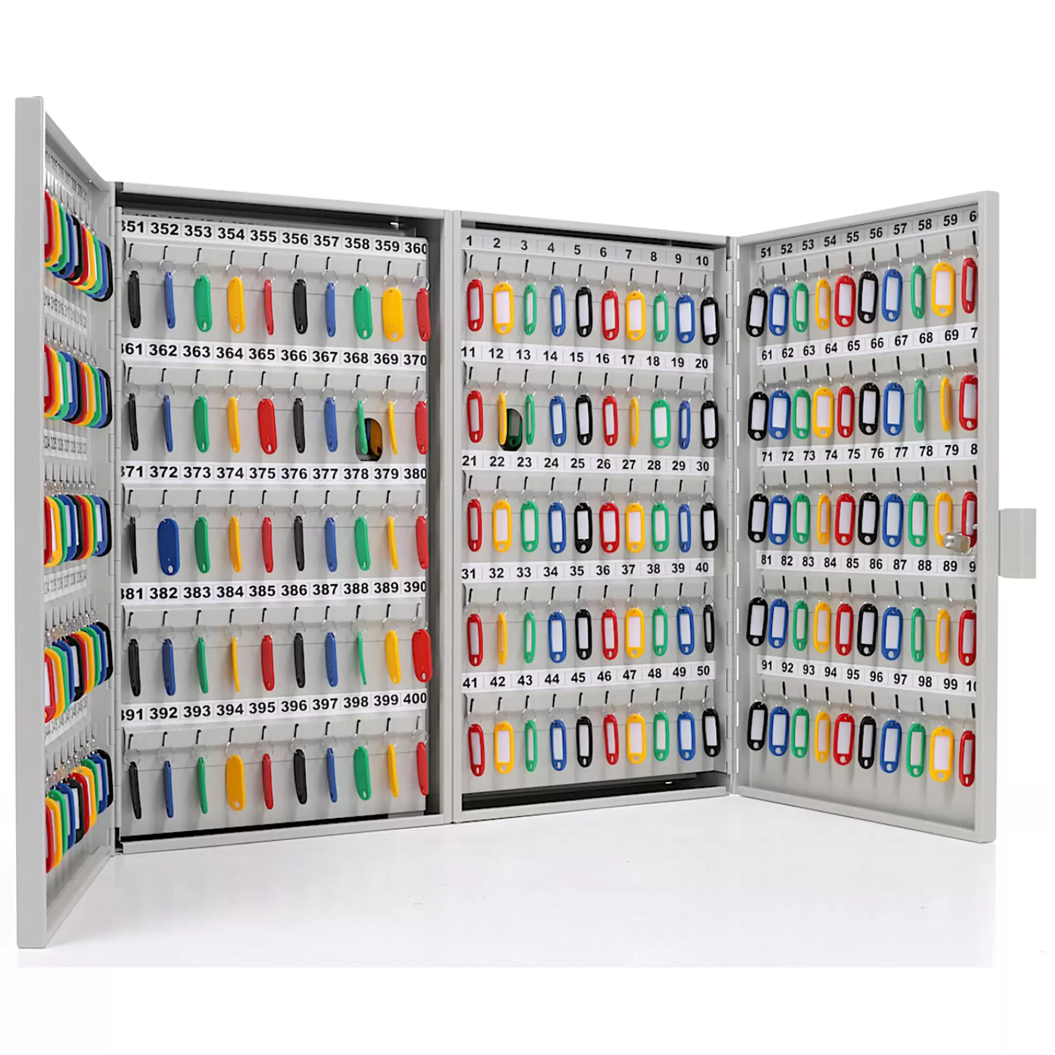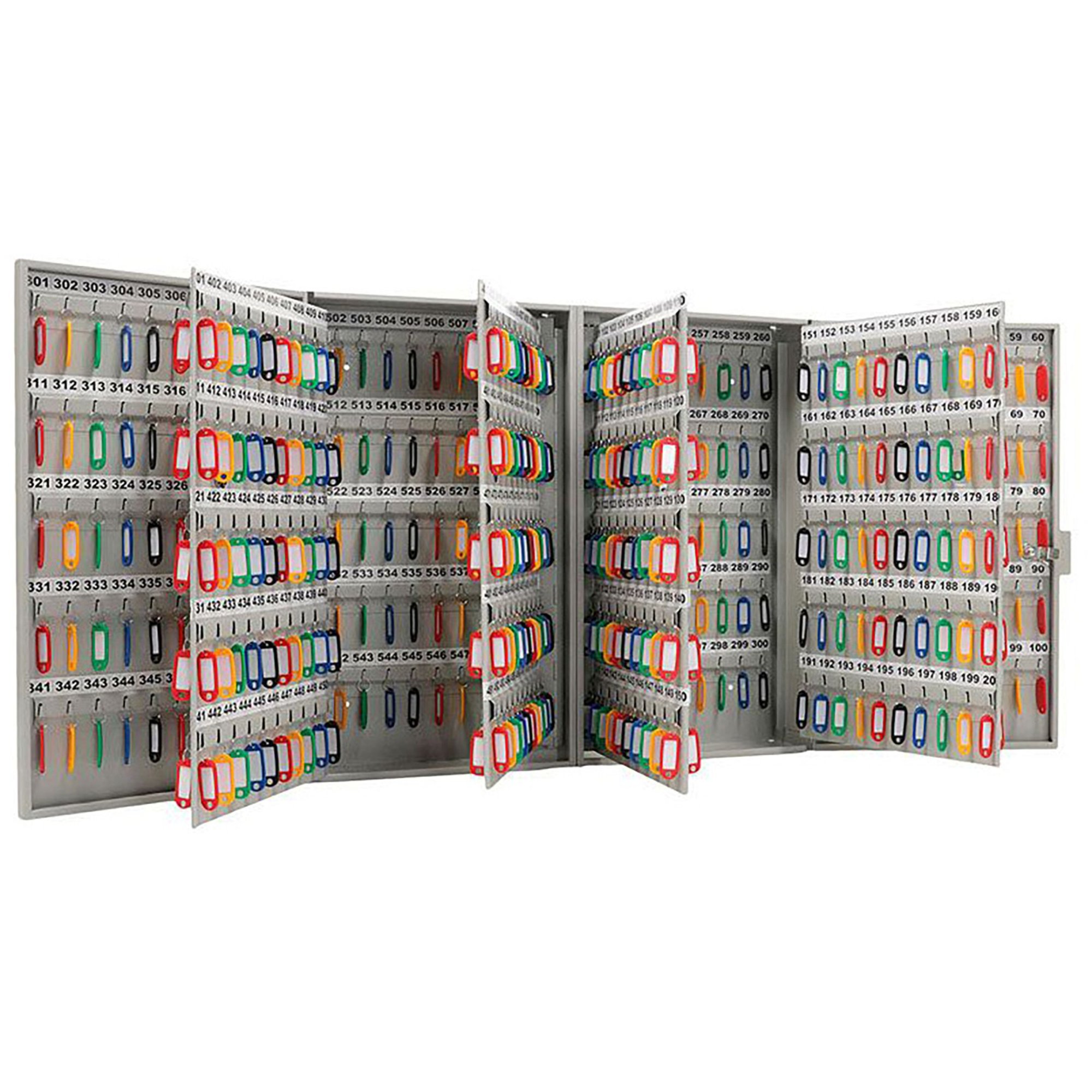 - Промышленная система строгого учета и молниеносного поиска — шестьсот пронумерованных ячеек и полный комплект брелков создают безошибочную структуру. Это основа для ведения детальнейшего электронного журнала, мгновенного поиска любого ключа по номеру и абсолютного контроля над цепочкой ответственности, что критически важно для безопасности и аудита.