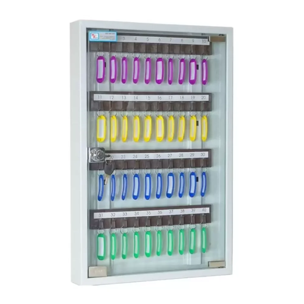 - Универсальная вместимость для отделов и постов — система рассчитана на 40 ключей, что идеально подходит для организации хранения в отделе, на посту охраны, в диспетчерской или службе эксплуатации здания, где требуется поддерживать порядок для значительного количества ключей.