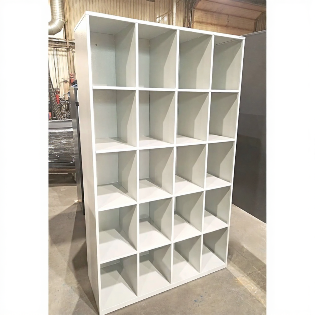- Удобные и практичные ячейки — каждая ячейка спроектирована для легкого доступа, часто имеет наклонную полку или бортик для фиксации обуви, а также обеспечивает базовую вентиляцию.