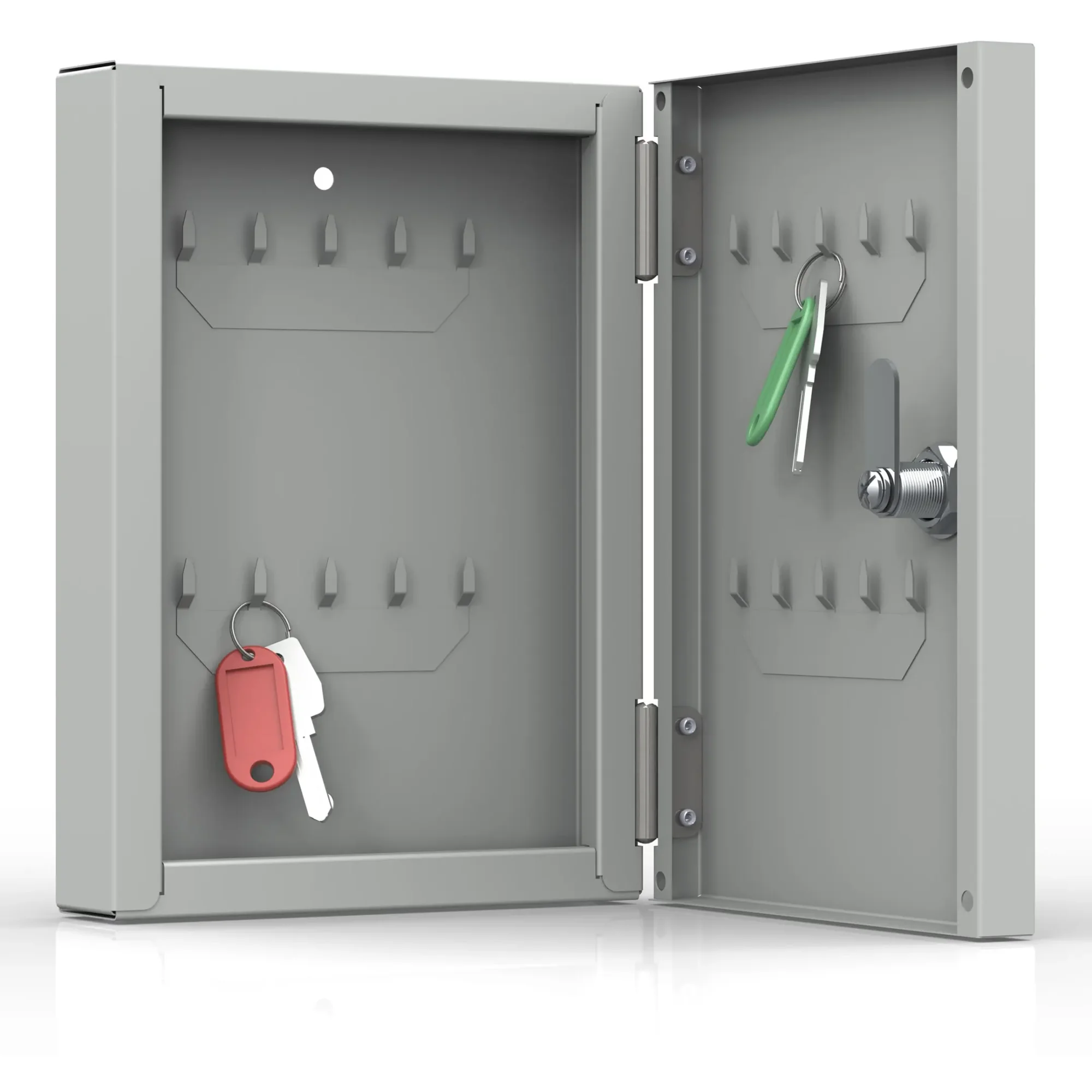 - Надежная защита от случайных потерь и постороннего доступа — прочный металлический корпус с замком обеспечивает защиту ключей от случайного рассыпания, потери или несанкционированного доступа посторонних лиц. Это простой способ обезопасить ключи от служебных шкафов, сейфов или личных вещей.