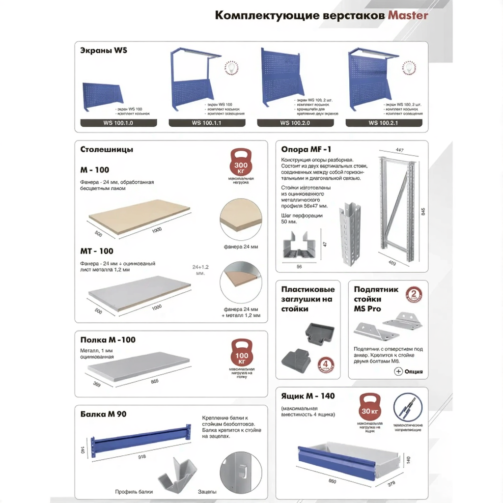 Верстак MASTER M100.MF1.MF1.110 — это надежное и функциональное решение для организации рабочего места на производстве, в учебных заведениях, мастерских и гаражах. Компактные габариты столешницы позволяют эффективно использовать ограниченное пространство.
