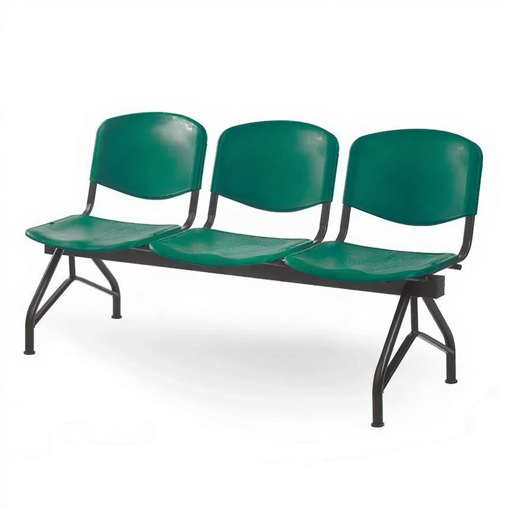 Основой служит металлический каркас, состоящий из металлических труб разных диаметров и форматов (30х15 мм, 25х25 мм, 60х60 мм, а также круглые трубы диаметром 16, 22 и 30 мм), соединенных таким образом, чтобы обеспечить максимальную устойчивость и безопасность конструкции. Каркас окрашен качественным покрытием из эпоксидно-полиэфирной порошковой краски, которое защищает металл от износа и гарантирует долгий срок службы даже в условиях интенсивной эксплуатации. Спинка и сиденья выполнены из пластика, устойчивого к влаге и загрязнениям, что существенно упрощает уход за мебелью.