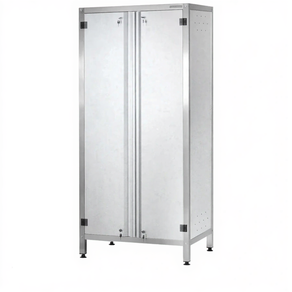 - Надежность и износостойкость — шкаф изготовлен из качественной стали с прочным порошковым покрытием стандарта RAL. Это покрытие обеспечивает отличную защиту от коррозии, устойчивость к царапинам, воздействию бытовой химии и умеренной влажности, гарантируя долгий срок службы и простой уход.
