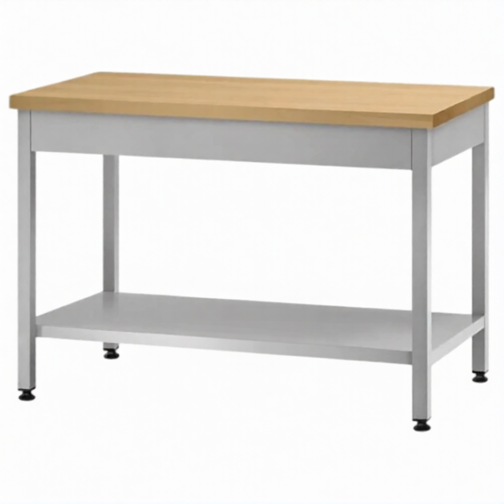 Стол кондитерский СПРп 860х1500х800 «Profi Ral», на 6-ти ногах, бук/40 (полка сплошная)