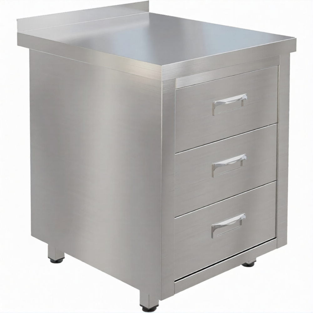 • 3 выдвижных ящика из нержавеющей стали;