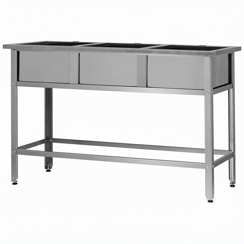 Ванна моечная ВМСн 530/3 «Norma Inox», 3 м/о 430х430х300 (полка с 2-мя отв., борт; ножка угл.) используются на предприятиях общественного питания для ополаскивания и мытья посуды.