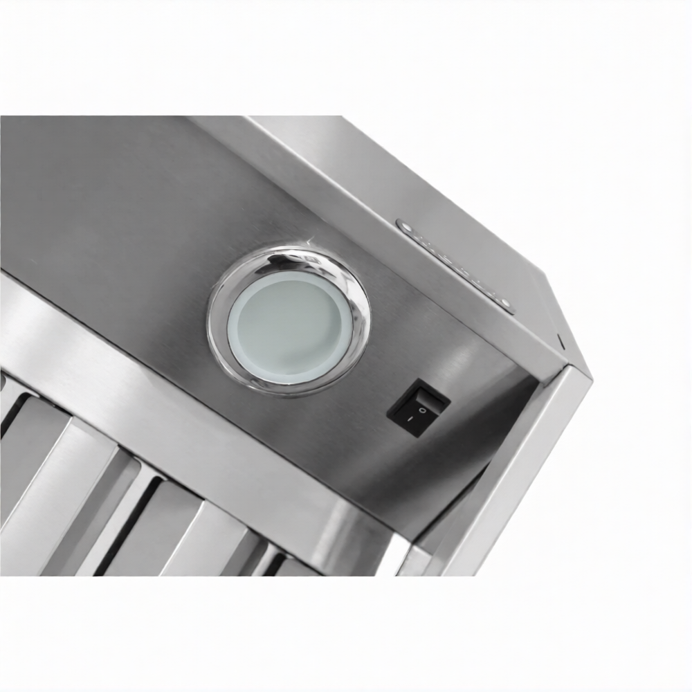 • корпус зонта, поддон для сбора жира, вентиляционный патрубок и лабиринтные жироулавливающие фильтры – нержавеющая сталь;