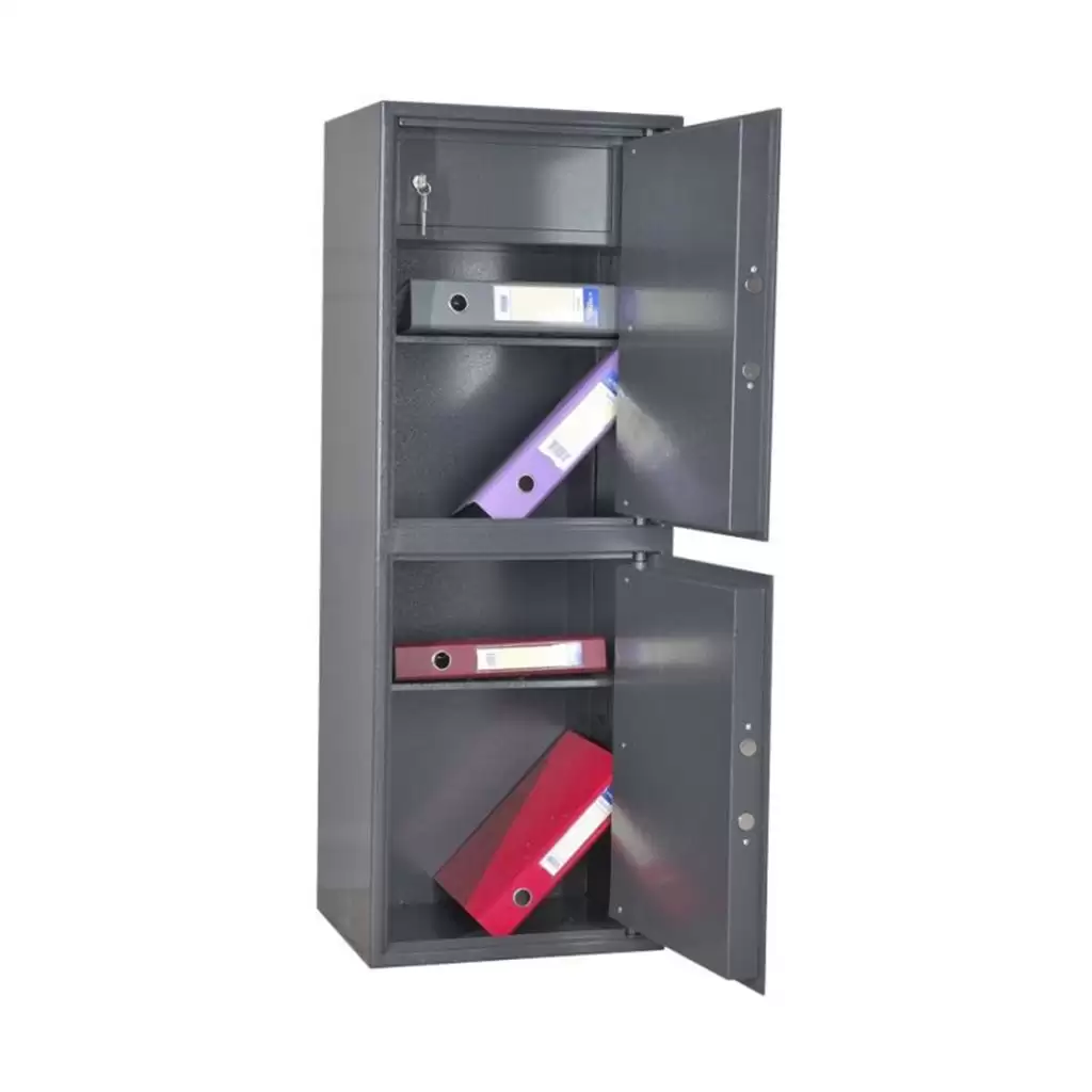 • верхнее отделение запирается на электронный замок, нижнее на ключевой;