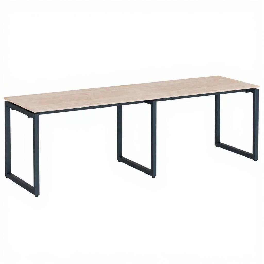 Конструкция Каркасной системы «бенч» на 2 рабочих места состоит из двух боковых опор, одной средней опоры и двух комплектов по две траверсы. Опоры выполнены из труб профильного сечения 40*40/60*30 мм, которые сварены между собой «О»-образно (форма буквы «О»). Траверсы выполнены из трубы 20*40мм. Траверсы с опорами соединяются винтами с помощью шестигранника №6. Все детали покрыты порошковой краской.