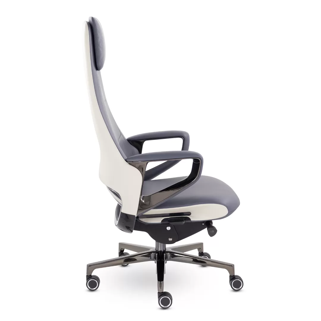Кресло EPIK A-001-GB L201-271 (темно‑синий/светло‑серый) — высококлассное кресло руководителя с обивкой из натуральной кожи в стильной цветовой комбинации. Модель сочетает эргономичный дизайн, надежную конструкцию и продуманные механизмы регулировок, что обеспечит комфортную и продуктивную работу в офисе или кабинете.