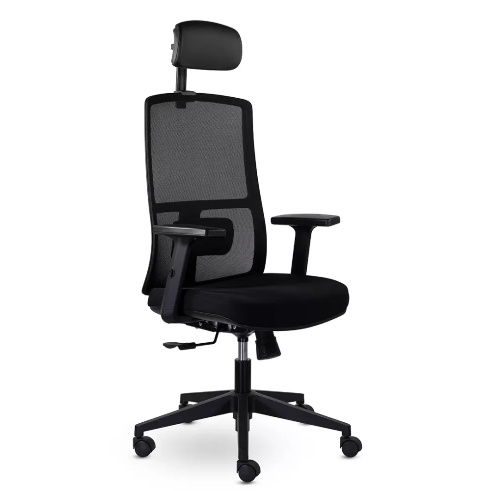 - Эргономичная конструкция с подголовником — высокая спинка и встроенный подголовник обеспечивают правильную поддержку позвоночника и шейного отдела, снижая усталость при длительной работе за компьютером.