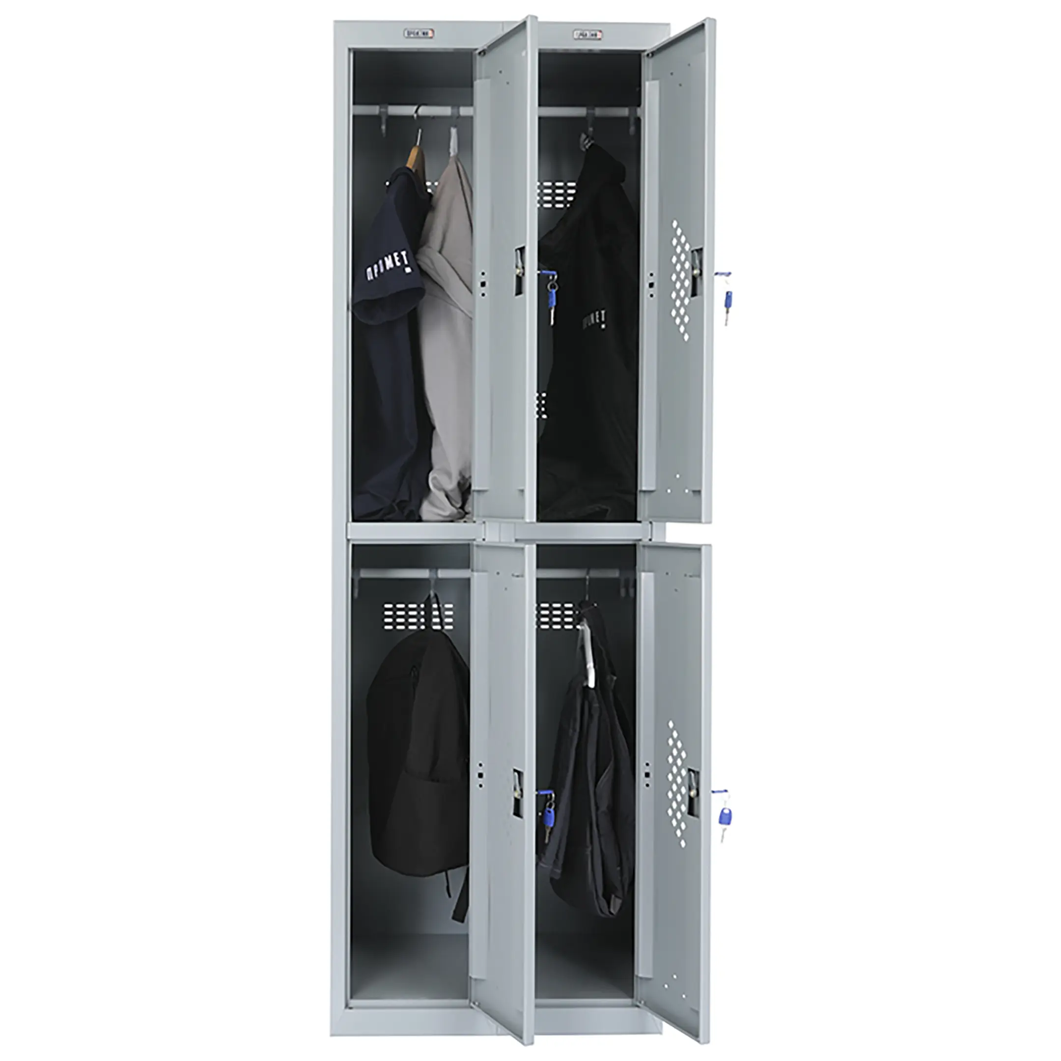 • опции (под заказ, уточняйте у менеджера): замком PL*** (вместо ключевого замка устанавливается бесключевой замок Euro-locks A129 с устройством под навесной замок), кодовый механический или кодовый электронный (по запросу), для камер хранения или фитнес центров; полка под обувь, подставка или скамья-подставка под шкаф, наклонная крыша